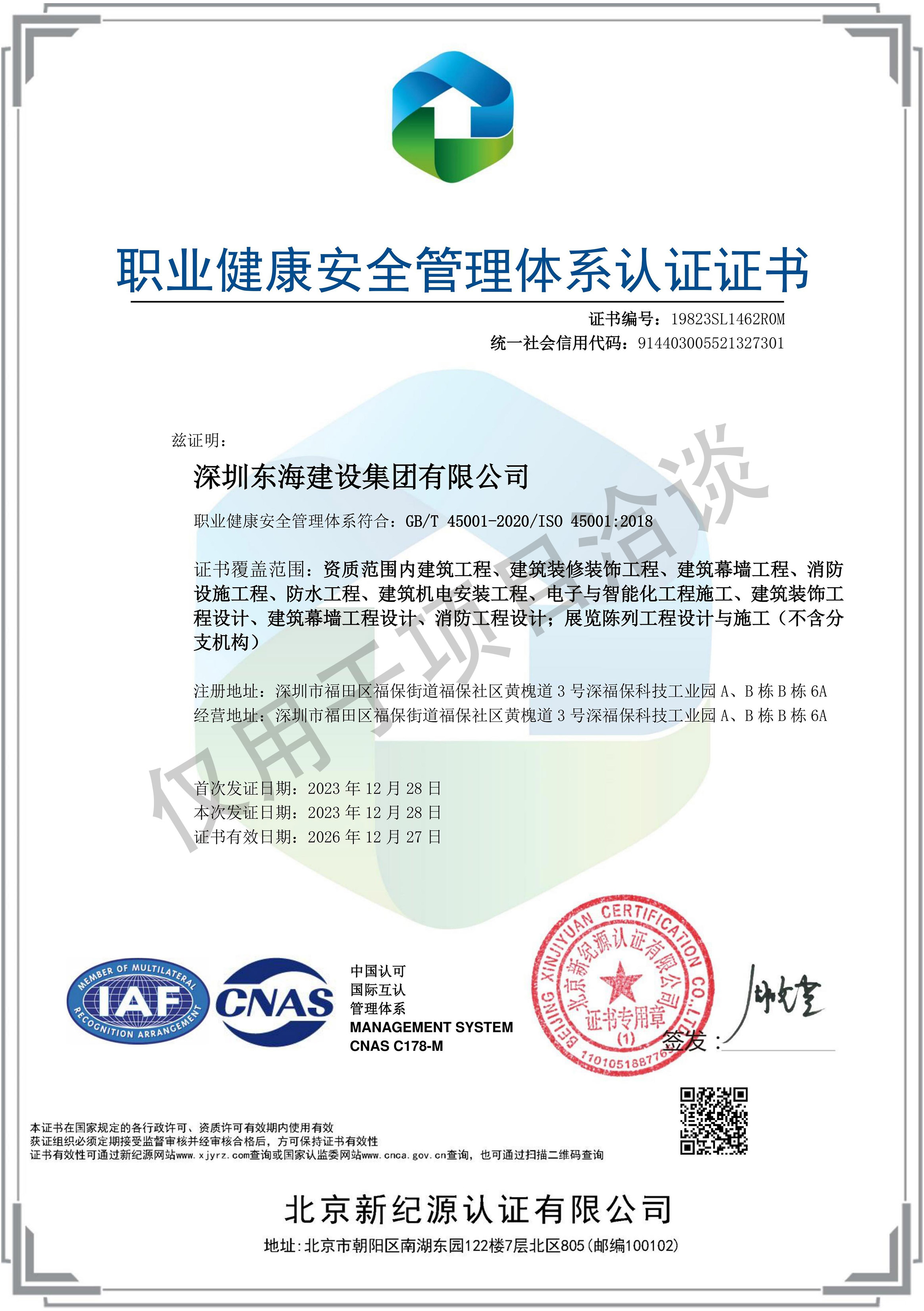 職業(yè)健康安全管理體系認(rèn)證